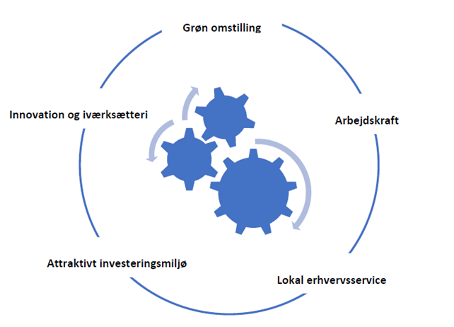 Svendborg Kommunes erhvervspolitik arbejder med fem erhvervspolitiske indsatsområder: